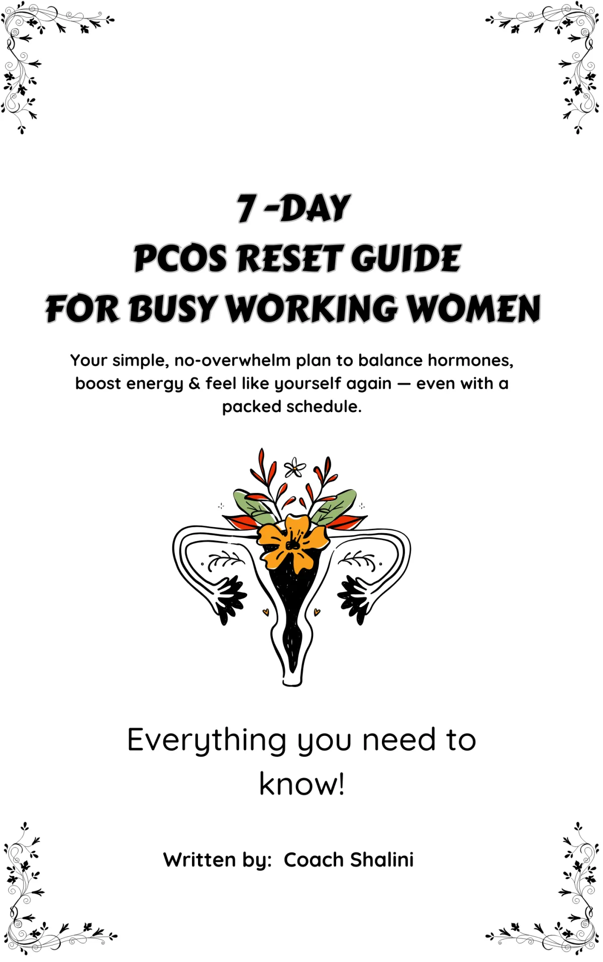 It combines simple diet, hormone-supporting habits, and practical lifestyle changes to help you lose weight, regulate periods, and feel in control again — naturally.